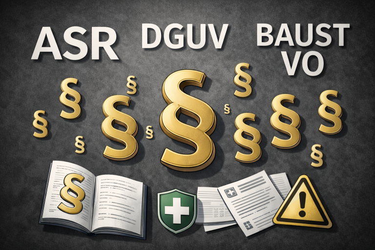 Unternehmen werden bei der praxisgerechten Umsetzung der Anforderungen aus ASR, DGUV und weiteren relevanten Vorschriften unterstützt. Änderungen in Regelwerken werden berücksichtigt und in die laufende Betreuung integriert.